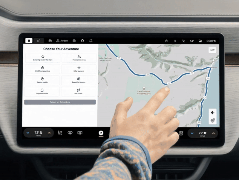 Rivian owners can enjoy this vamped up RivianRoamer dashboard feature, that uses geolocation to provide spontaneous routes for your next adventure.